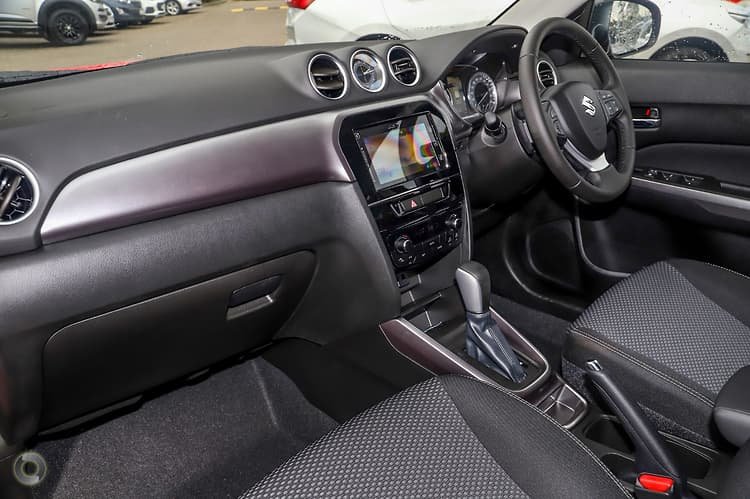 SUZUKI- . Vitara 1.6LT VVT 6 speed automatic with paddle shifters, 7 inch multimedia touch screen with satellite navigation, reversing camera, Apple CarPlay and Android Auto, 4.2 inch multi-information colour LCD display, Bluetooth and iPod connectivity with steering wheel audio controls, cruise control, digital climate control, keyless entry and start system, 7 airbags, electronic stability control, ABS, electronic brake distribution, Brake assist, 17 inch alloy wheels, daytime running lights, front fog lights and privacy glass.